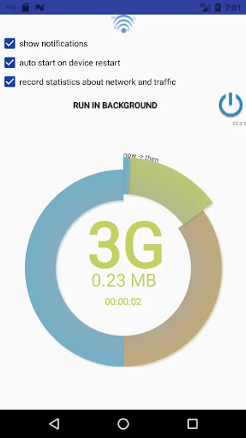 new features: shows last 25 network change events with statistics about the traffic(experimental) and about how much time was the connection used.