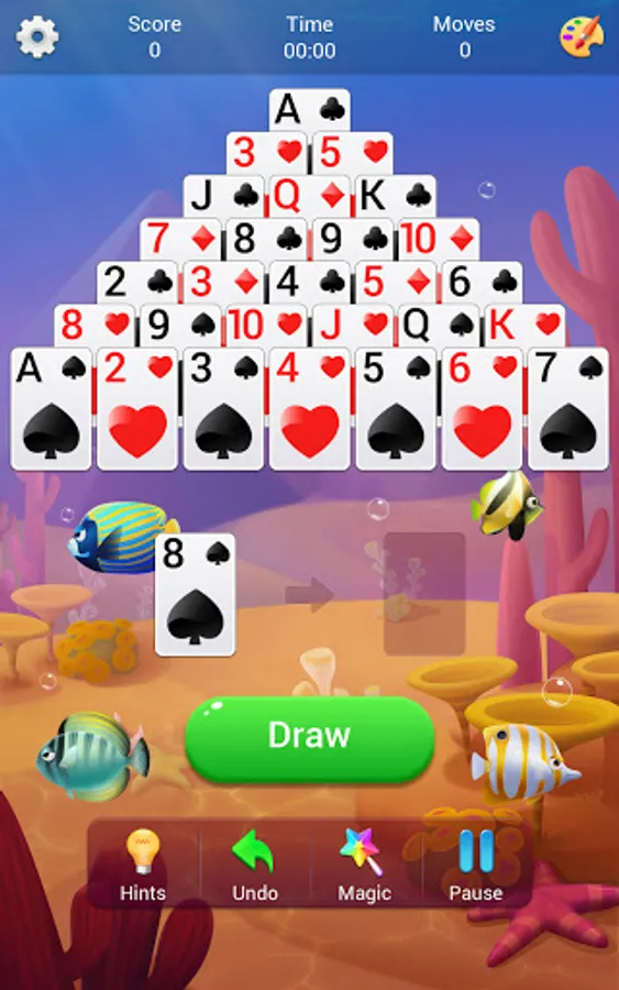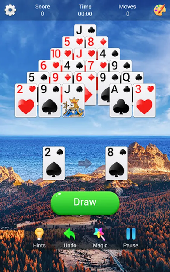 Card Faces & Card Backs: Hundreds beautiful card faces and card backs make each deal of your pyramid solitaire game colorful.
