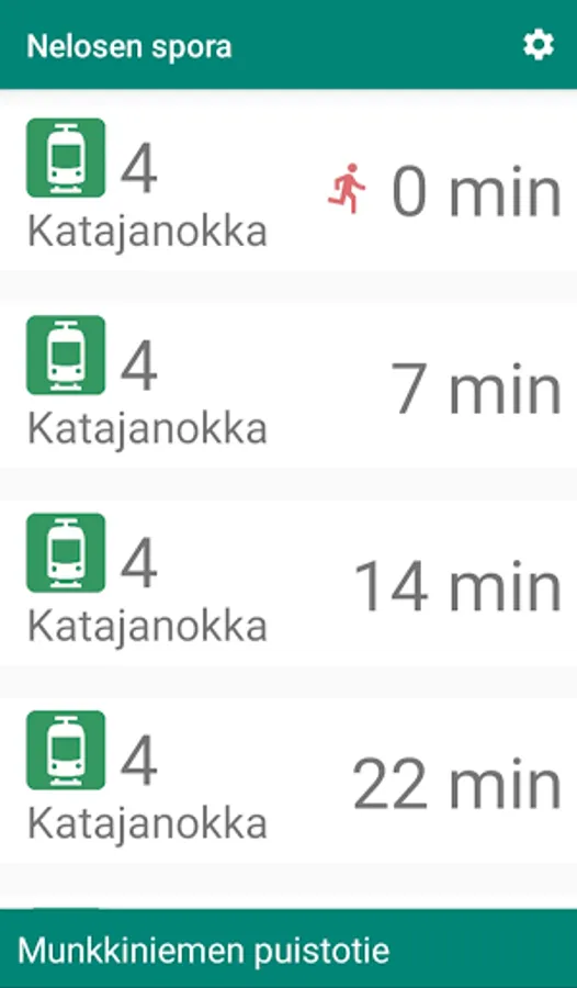 Nelonen's Spora Pro tells you how many minutes later the next tram (s) will leave towards the center - from the Munkkiniemi stop of your choice.