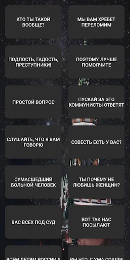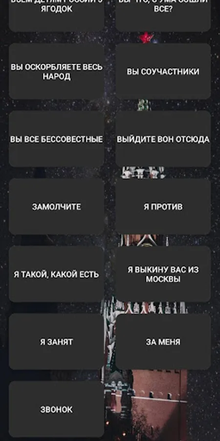 A lot of popular phrases are collected here - "This is Russia!", "I am who I am!", "A call of special national importance!" etc. - in case of important negotiations!