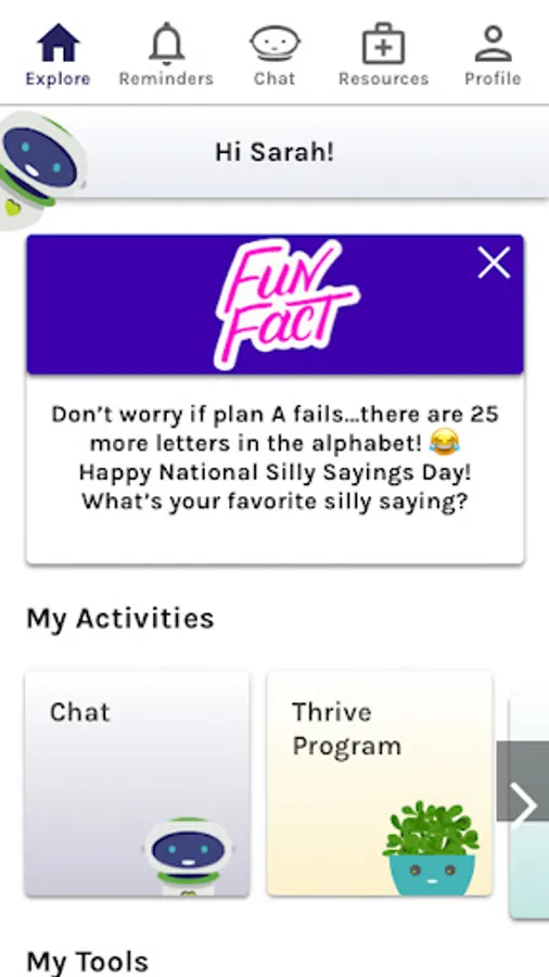 Pyxir is the Pyx Health Intelligent Robot! This friendly, caring chatbot character will check in with you regularly and is available 24/7 to offer insights, humor, practical techniques, and uplifting support whenever you want to chat.