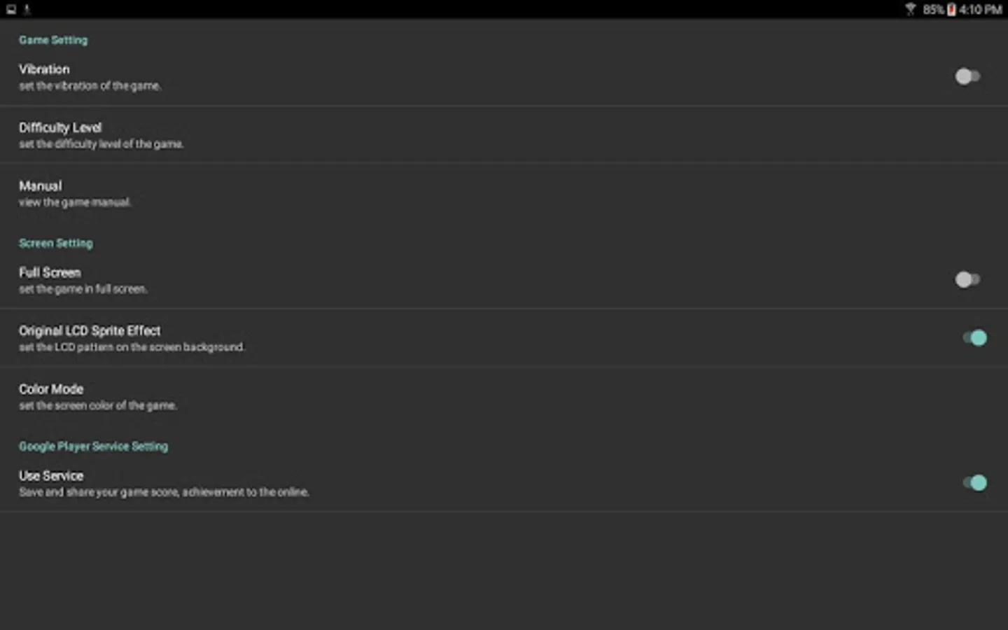 - Google play service integration (achievements, leader boards)