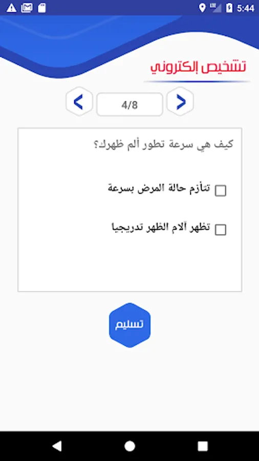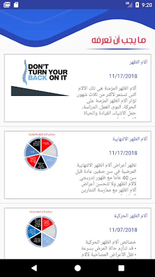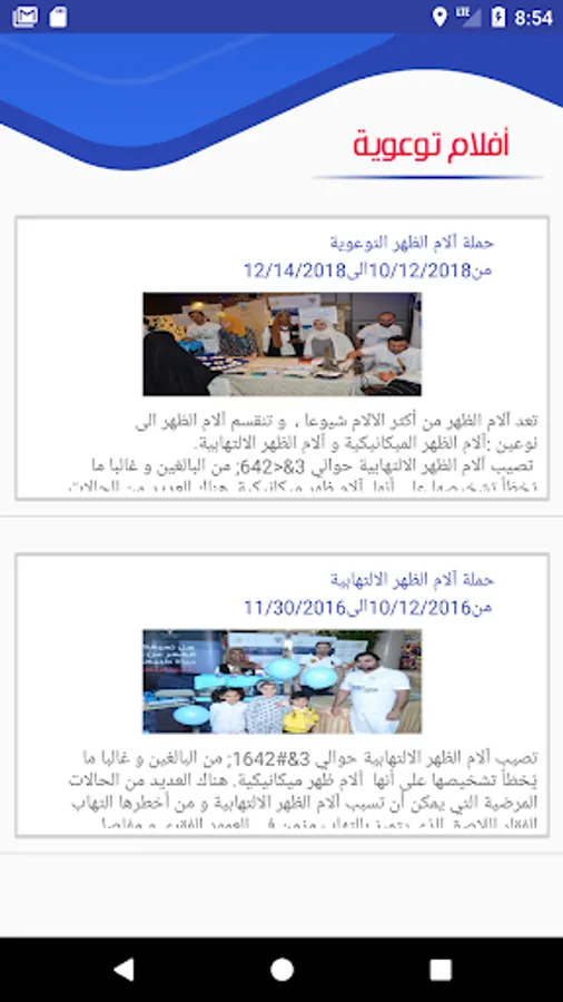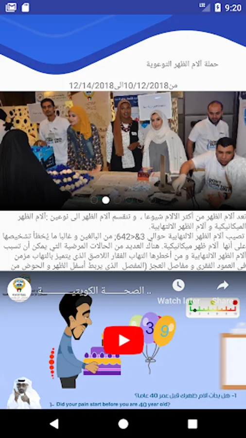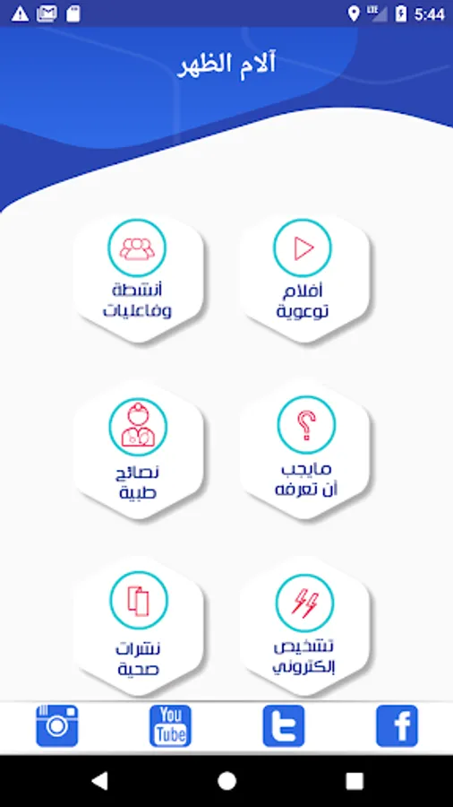 The application includes a range of electronic services such as electronic back pain diagnosis, electronic consultation with specialists, rich information on what should be known about back pain, a series of awareness films and integrated health bulletins, an electronic questionnaire and back pain detection activities and events.