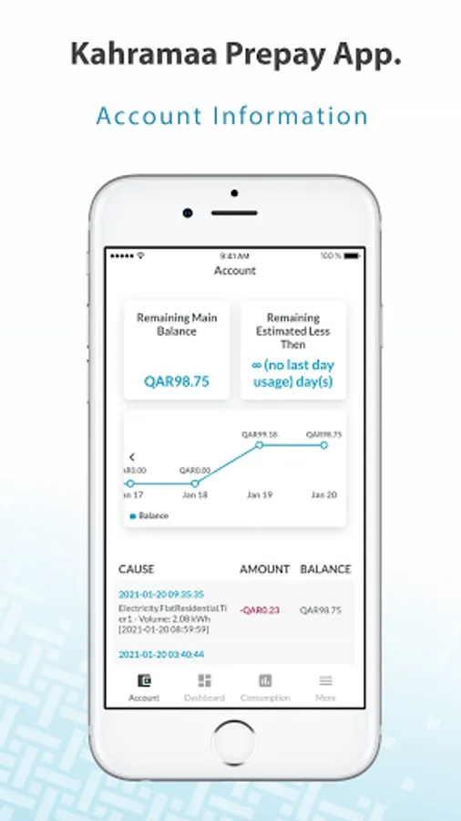 Qatar General Electricity & Water Corporation app to manage Prepaid Account, which provides several services for the customers: