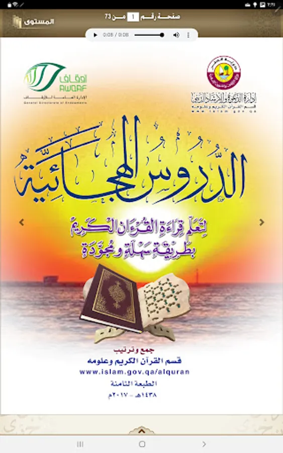 Within the framework of the keenness of the Ministry of Awqaf and Islamic Affairs in the State of Qatar on everything that serves the Book of God Almighty in terms of science and distinct educational means, it has issued this educational application for the book of spelling lessons, issued by the Department of the Noble Qur’an and its sciences in the Department of Da`wah and Religious Guidance, taking advantage of the latest technologies in teaching the Holy Qur’an. From the Ministry to produce this application in line with technological development and serves the main objective of the book.