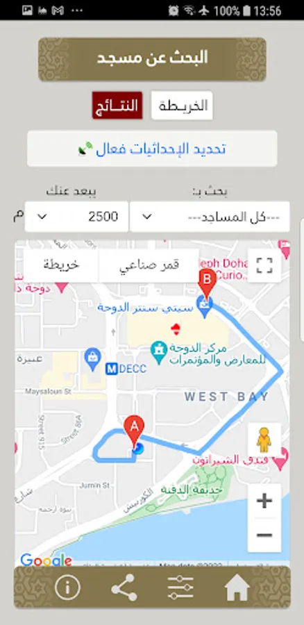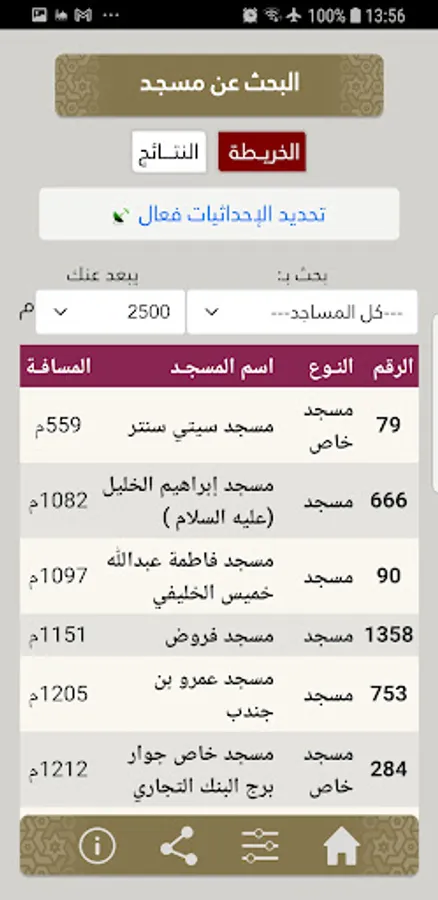 3- Searching for mosques with characteristics such as a mosque with a memorization center, a women’s prayer room, a mosque, homework...