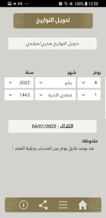 6- Converting dates from Hijri to Gregorian and vice versa from birth to Hijri.