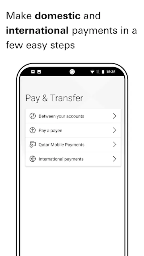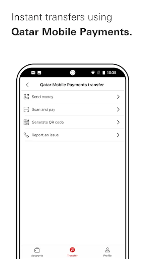 • Qatar Mobile Payments – send funds to other registered users using a mobile number or an alias. Alternatively scan a QR code to make a transfer to an individual, merchant or a government entity.