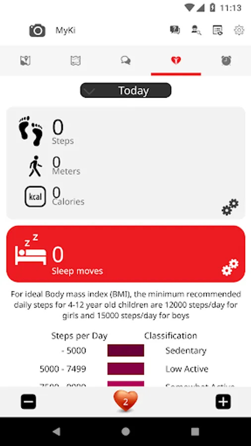 Health function: This function counts the steps of your child and based on standard measures, brings back full information for the number of steps, passed meters and burned calories during the day.