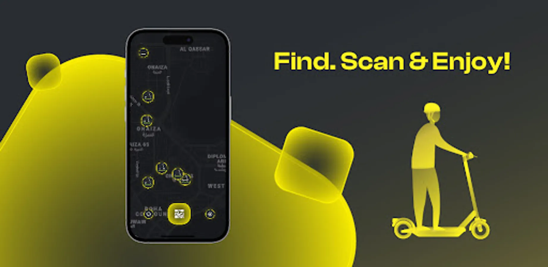 - Open the app to find nearby scooters.