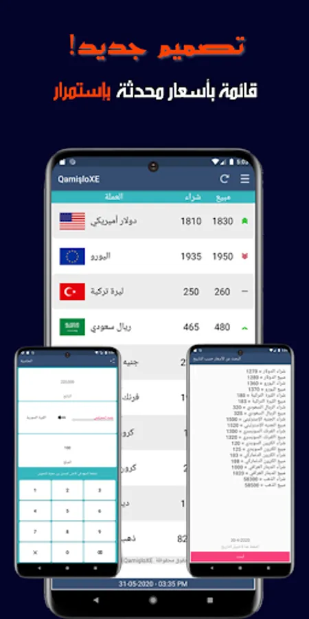 Free application provides you with rates of the major currencies and gold in Qamishlo regularly with a continuous follow-up of the course of the market.