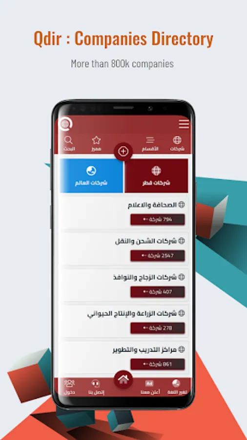 It is the first specialized directory for Qatari and international companies, as the directory contains data and information for Qatari and international companies such as names, addresses, telephones, mobiles and faxes of companies, activity and products in detail. And the websites of each company in all the following commercial sectors: