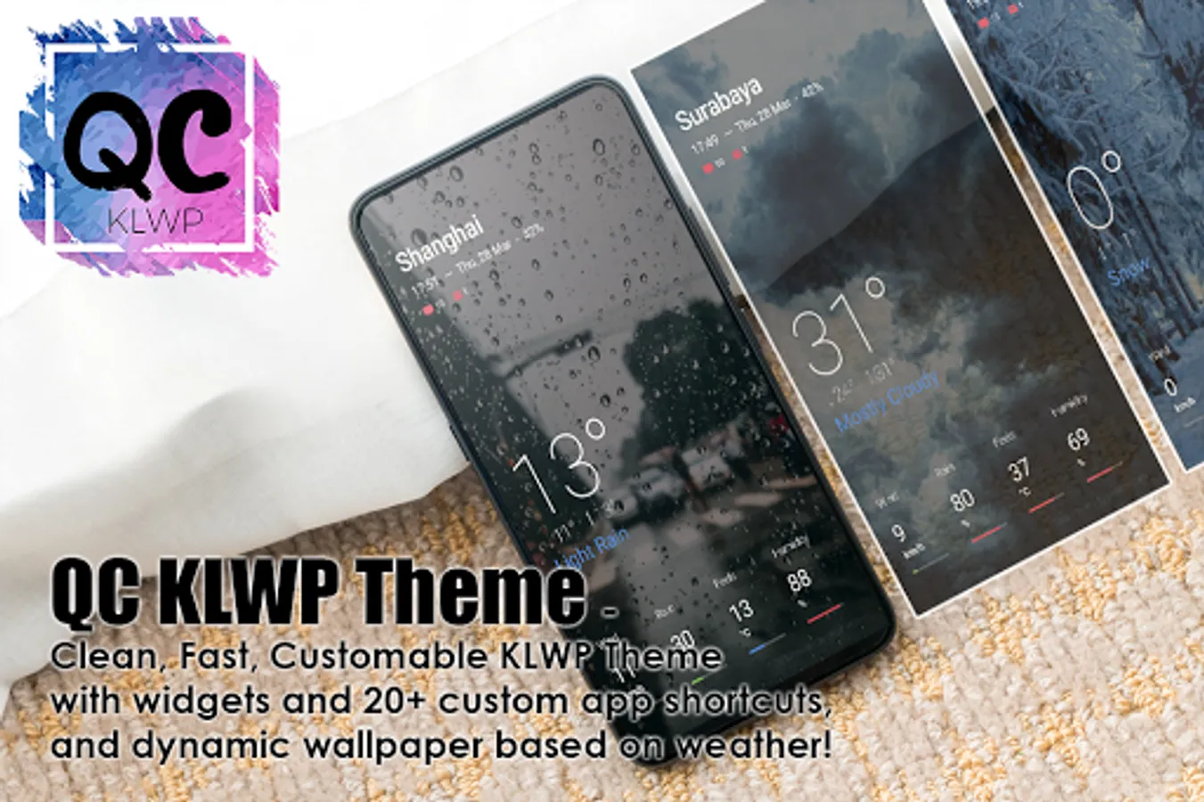 Clean, Fast, Customable KLWP Theme with widgets and 20+ custom app shortcuts