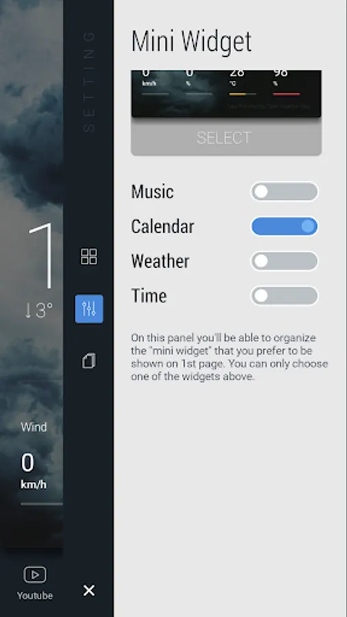 - Custom 4 type of widget (Time, Music Player, Calendar, Weather)