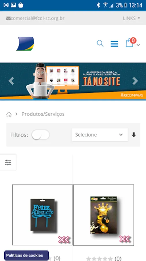 To publish products, the interested company must be associated with a CDL Catarinense. For more details, contact your city's CDL.
