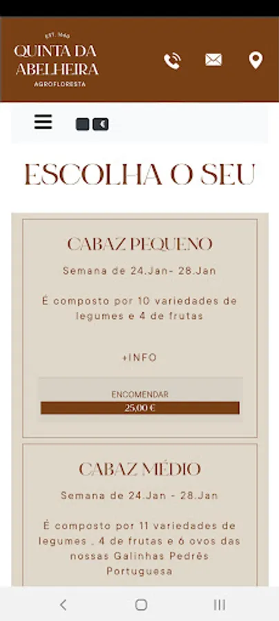 Quinta da Abelheira serves Sintra, Cascais and Restelo with its Vegetables, Fruits and Organic Eggs. Now easier than ever, order your basket through our app and make the most of the quality of our products.