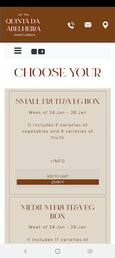 Quinta da Abelheira serves Sintra, Cascais and Restelo with its Vegetables, Fruits and Organic Eggs. It is now easier than ever to order your basket through our app and make the most of the quality of our products.