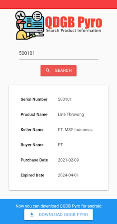 QDGB Pyro is app that you can use to find your product details by using serial number.