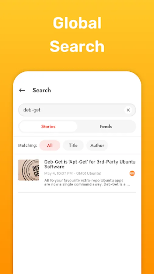 Interested in a news topic but can’t find it in predefined categories? Use builtin RSS search feature to find whatever you are looking for.