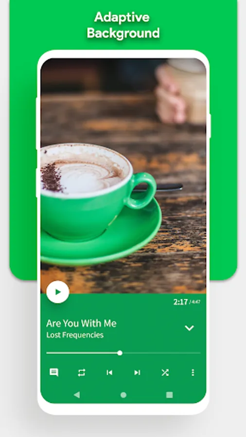Eon Audio - MP3 Player Pro includes adaptive UI feature, which enables Eon Audio - MP3 Player Pro to adapt Now Playing background colors according to the album art of currently playing track.