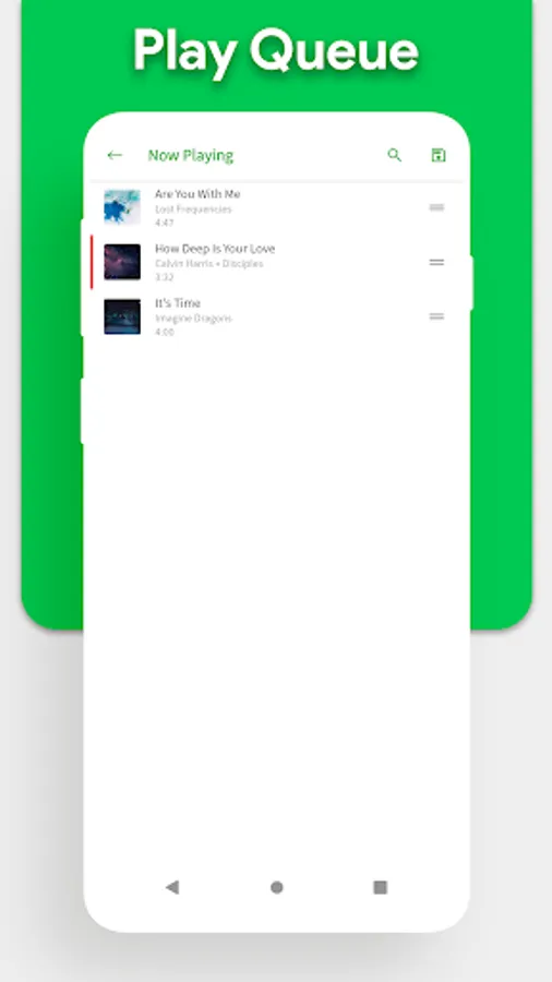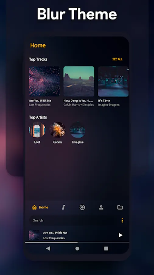 With Eon Audio - MP3 Player Pro you have the option to customize Player screen, two Player skins (themes) provided in free version and three more options in Eon Audio - MP3 Player Pro version.