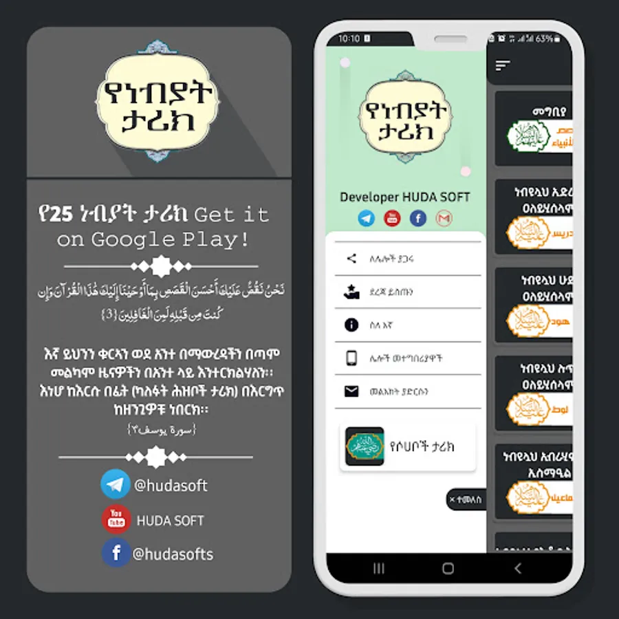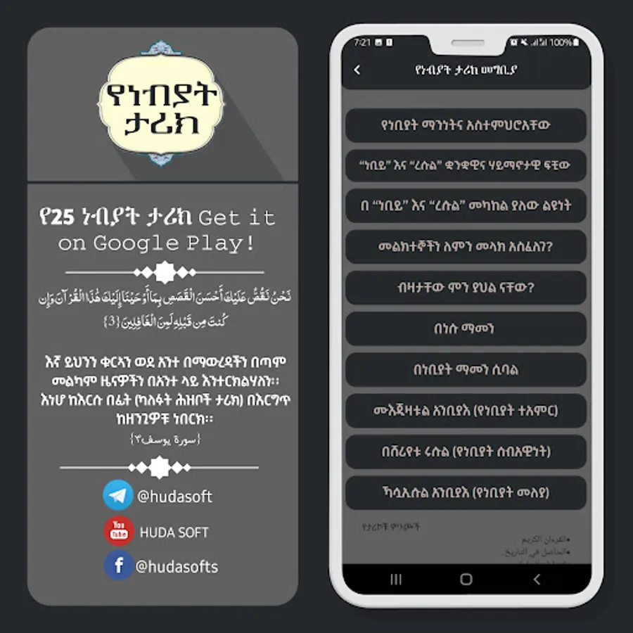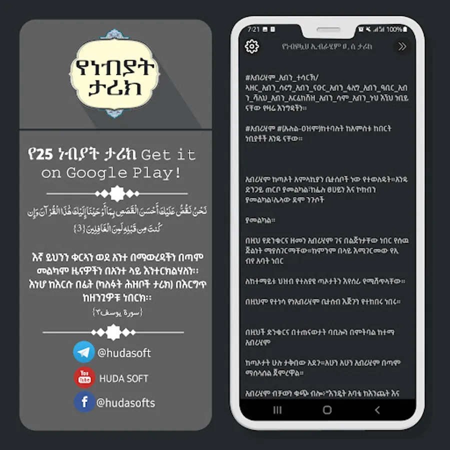 ይህ አፕ የ25 ነብያት ታሪክ በአጭሩ አካቶ ይዟል። ከቀደምቶች ታሪክ እራሳችንን እንድናስተምር ይረዳን ዘንድ ይህን ጠቃሚ አፕ አዘጋጅተን አቅርበንላችኋል።ከአጅሩ ተቋዳሽ እንዲሆኑ አንብበው ለሌሎችም ያጋሩ።