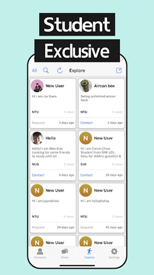 HiUni requires a student email. It is a platform that is exclusive to Singapore Students. Only students with the same email extension can see each other content/chat.