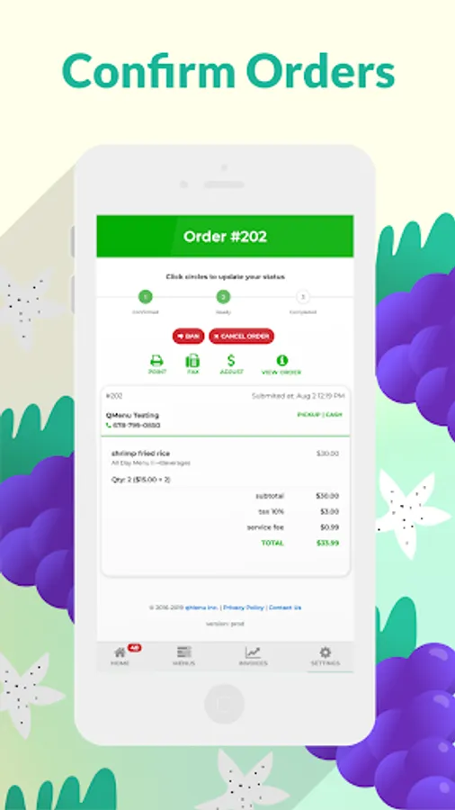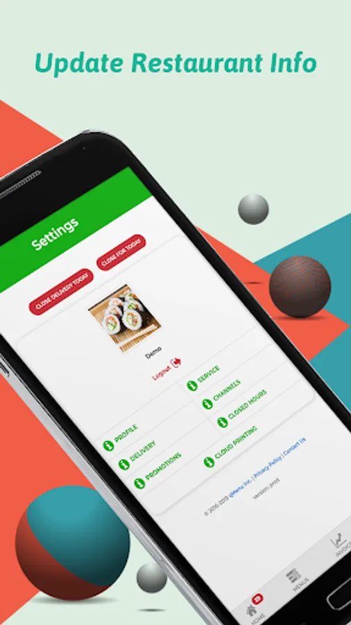 qMenu for Restaurants allows restaurant owners to manage online orders, update order status, update menu price, upload menu item photos, and change settings.