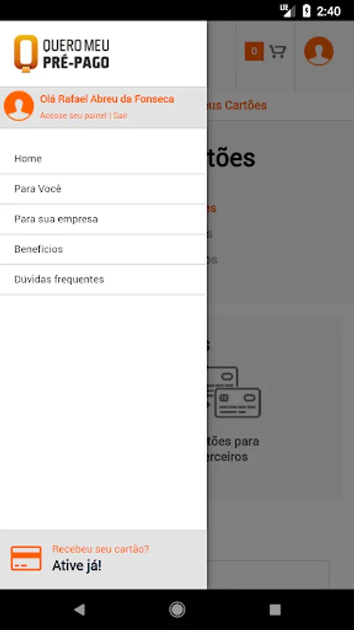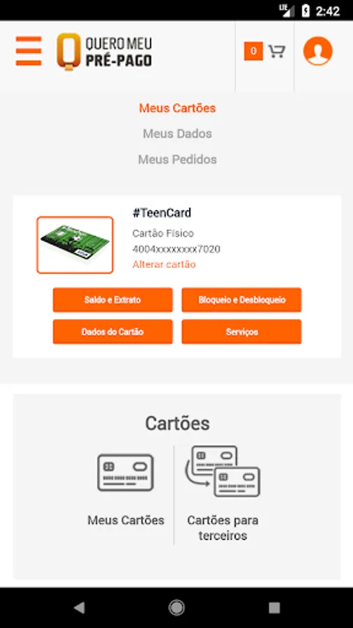 To access the information on your card for use application, the same login and password created in www.queromeuprepago.com.br site. This application is valid for cards purchased through the I My Pre-Paid: Free World, #TeenCard, More than present, Visa International Prepaid AliExpress and Agillitas Corporate.