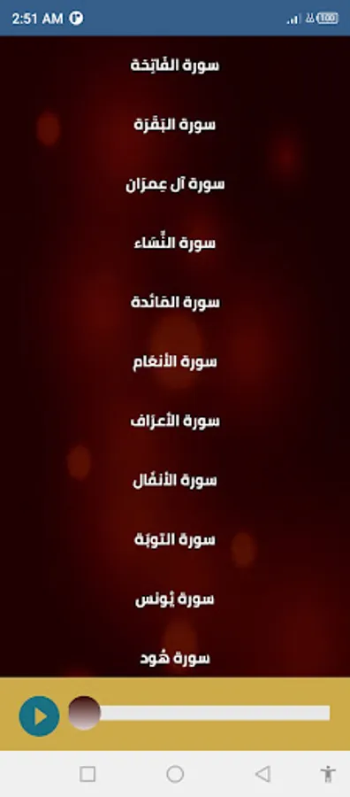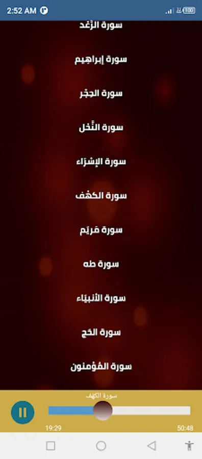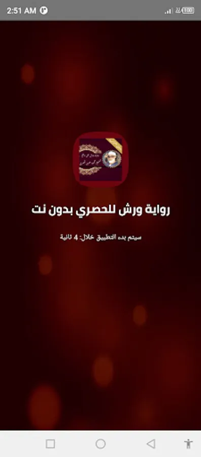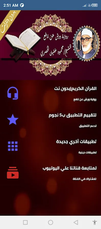 The Holy Qur’an is recited completely with the voice of the reciter, Sheikh Mahmoud Khalil Al-Hosari, a novel by Warsh on the authority of Nafi’, works without connecting to the Internet