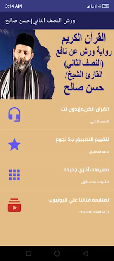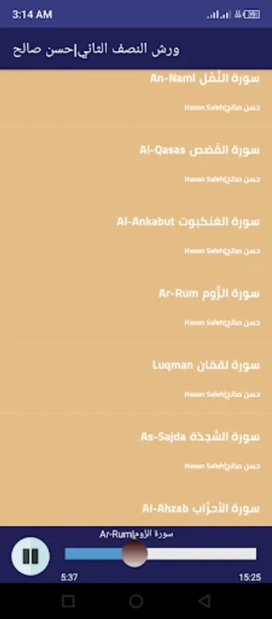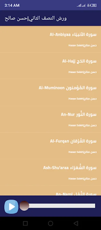 The second half of the Noble Qur’an, with the narration of Warsh on Nafi’ without the net, with the voice of Sheikh Hassan Saleh, starting from Surat Al-Anbiya to the people