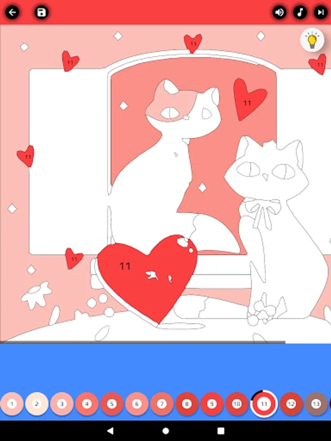 All the pictures have numbers on them. Choose a picture that your heart desires and paint the corresponding color fields according to the color numbers of the palette by tapping on them. You can easily color a work of art and bring it to life in no time. Painting has never been so easy.