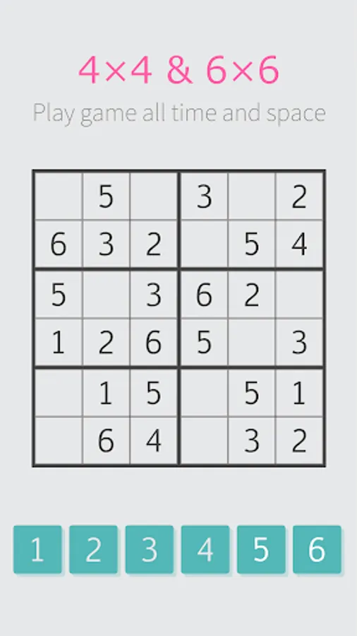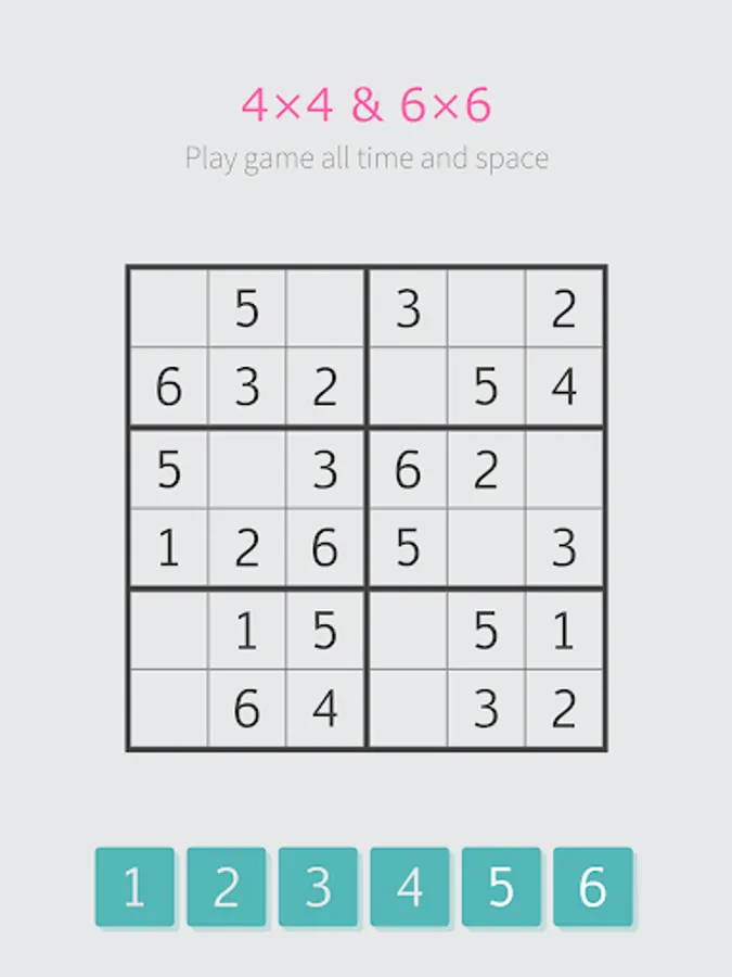 You can enjoy 4×4 or 6×6 grid Sudoku if you are beginner or sudoku veteran.