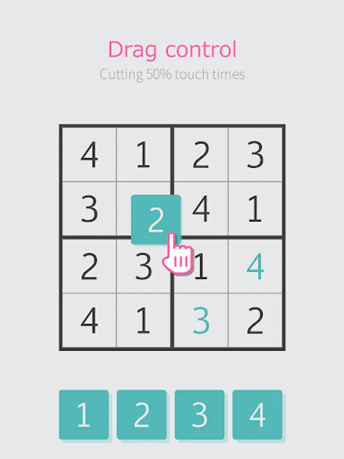 1. Conventional touch play : Conventional touch play : touch / select the square of grid, then touch the number under the board.