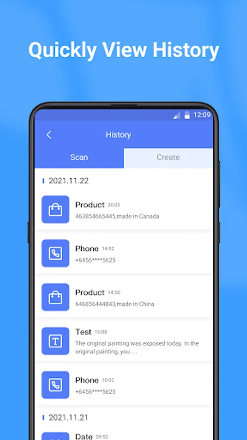 All created and scanned barcode/QR code history will be saved clearly for quick viewing at anytime.