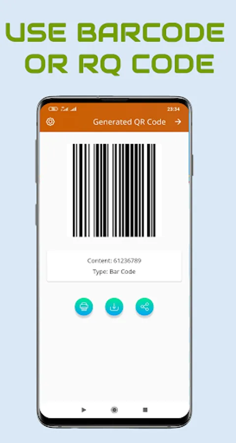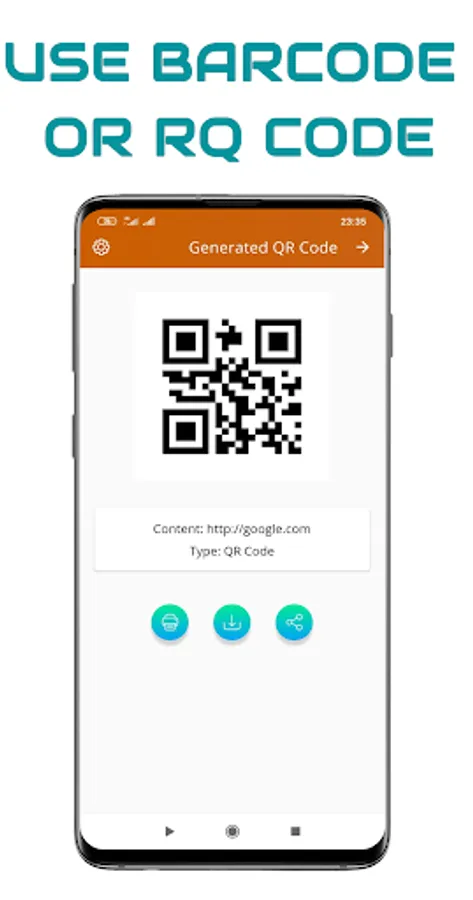 QR code generator feature: you can generate qr code android and allows you to save, share code you just created.