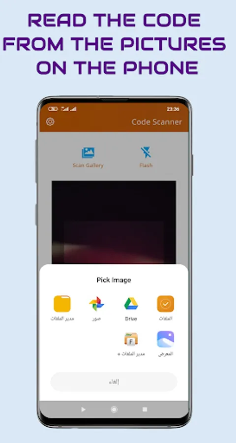 other functionality: create QR, scan Image, scan from gallery, share your contact info via QR