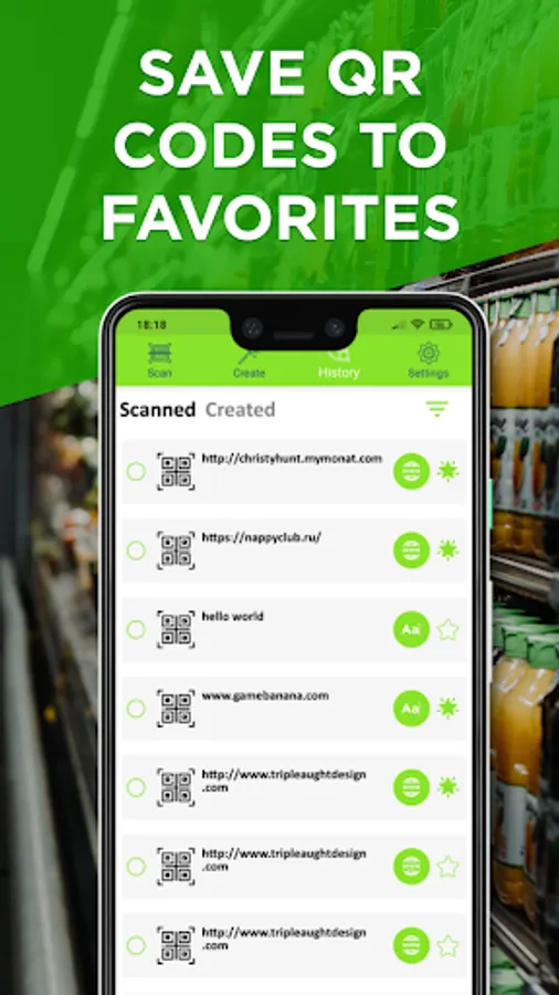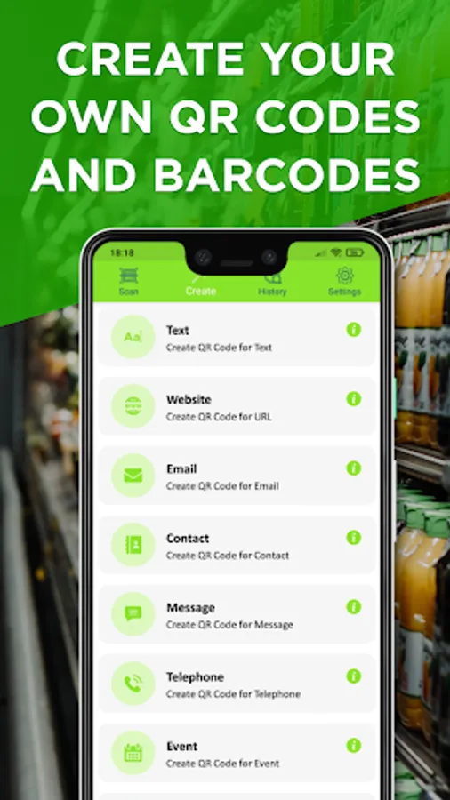 Immediately after decoding, all information will be displayed on the smartphone screen. Without leaving the QR Code Scanner, you can share information via sms, instant messengers or email.