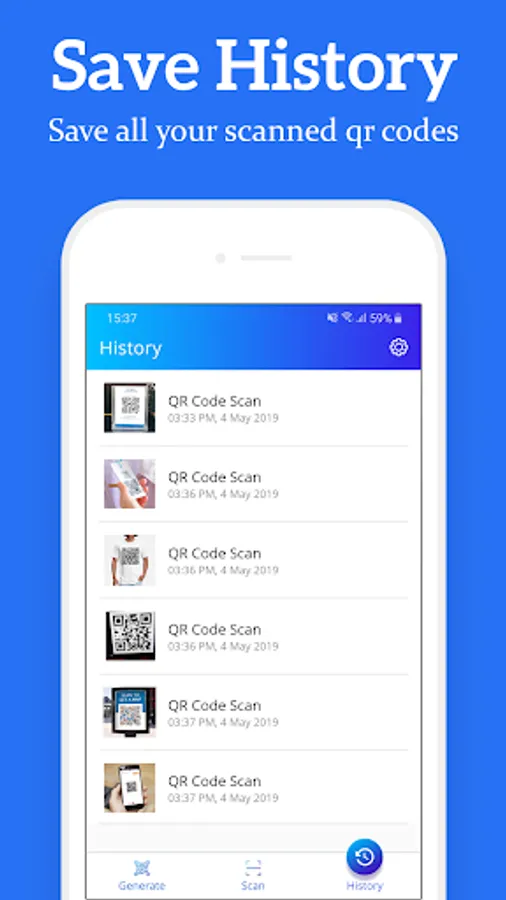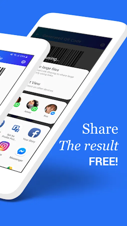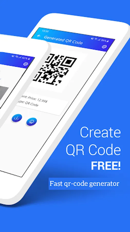 QR barcode scanner app helps you generate QR codes anytime in multiple formats, Weblink, Text, Contact, Phone Number, WiFi, GEO Location, Mail Address, SMS, Calendar, etc. By inputting the information and tap "create" button, you can create your own QR code or barcode. After generating qr code you can share the QR code. And also the number of created QR code is unlimited for free.