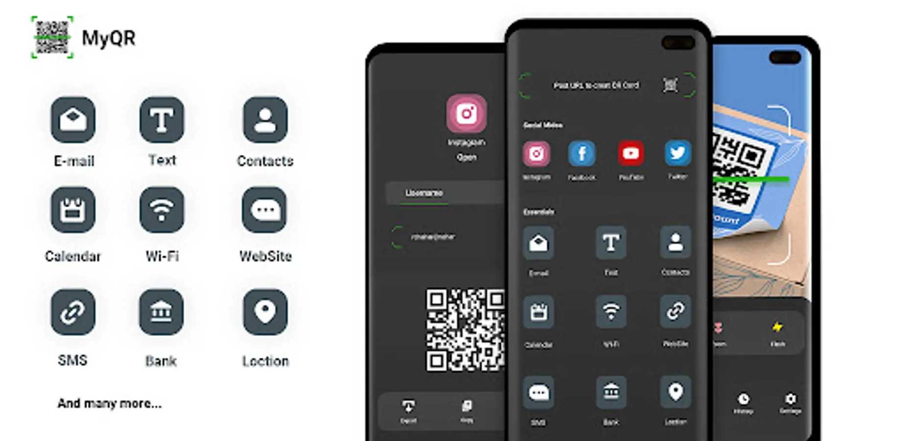 MYQR supports every QR and BAR code so that you won't feel any discomfort while scanning. It scans and decodes all forms of QR codes/barcodes, including contacts, URLs, Wi-Fi, products, text, books, E-mail, location, calendar, and more, which is done automatically.