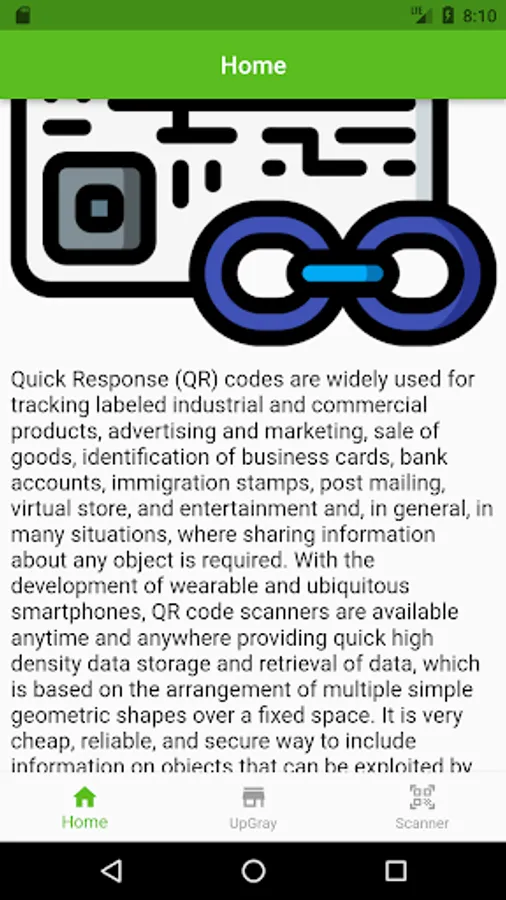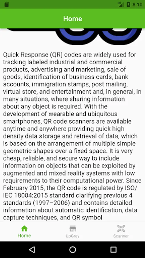 The application introduces users to QR codes and the uses of QR codes, the application also helps you to scan QR codes on packaging codes as well as other QR codes or barcodes.