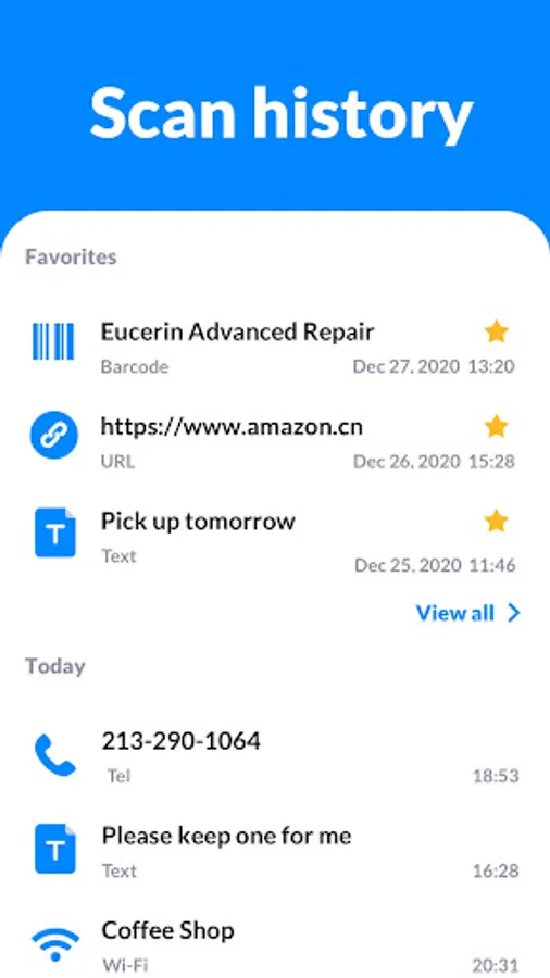 Free and full-featured QR code scanner app for all Android devices, helps you easily scan and decode all types of QR codes/barcodes at lightning speed⚡. 100% free and easy to use.