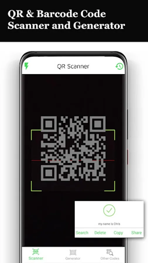 💎 When scanning the QR, if the code contains a URL, you can open browser to the site by press search button. If the code contains only text, you can instantly see. you can also copy and share the data by clicking copy and share button.