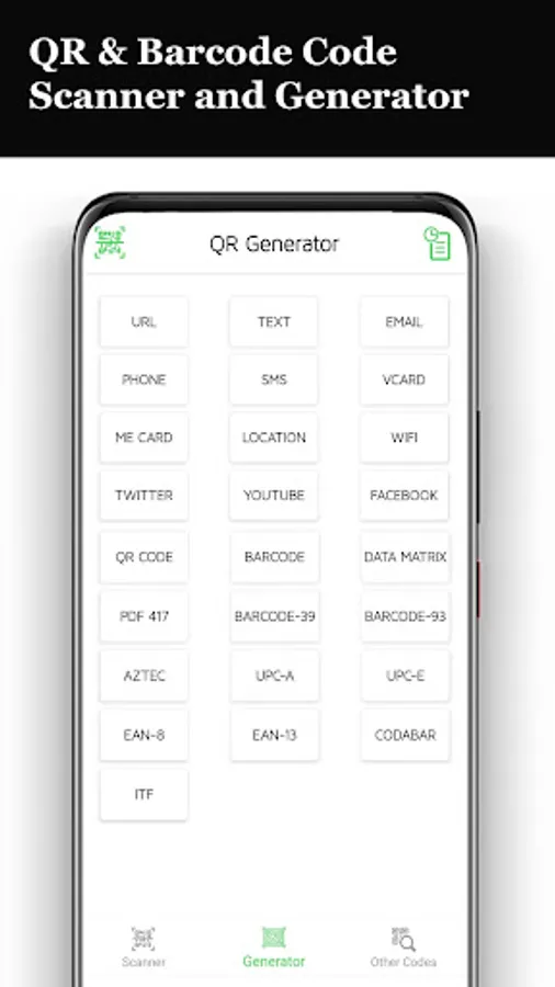 💎 QR & Barcode Scanner : QR & Barcode Generator can scan and Generate all QR / barcode types including text, url, ISBN, product, contact, calendar, email, location, Wi-Fi and many other formats.