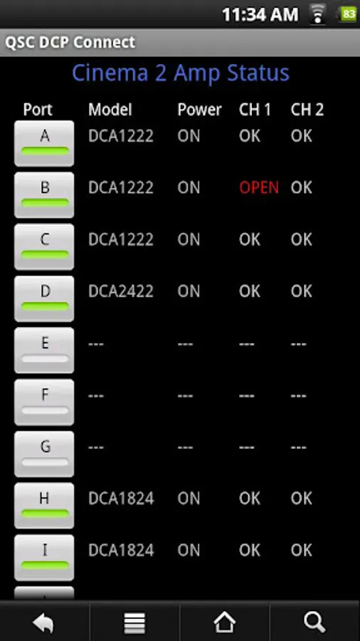 QSC’s advanced DataPort connection between the DCP and DCA amplifiers allows the DCP to monitor amplifier and loudspeaker loads and report their condition via the new Android application.