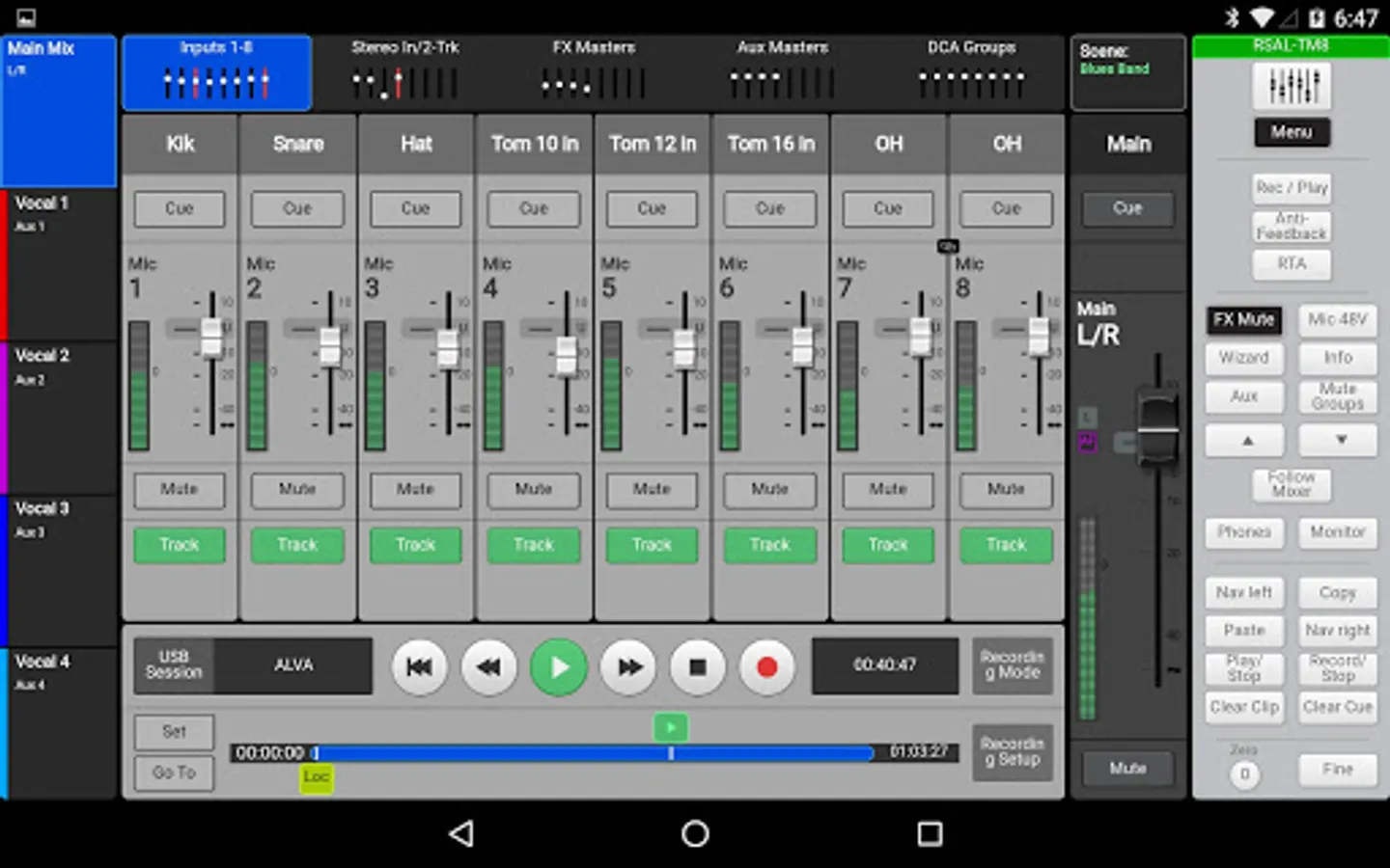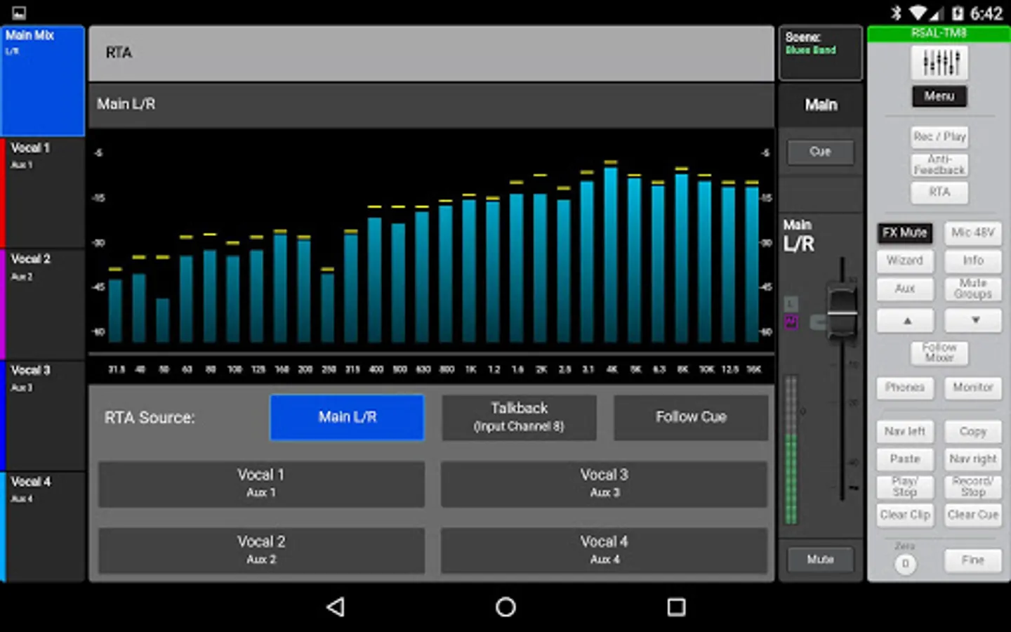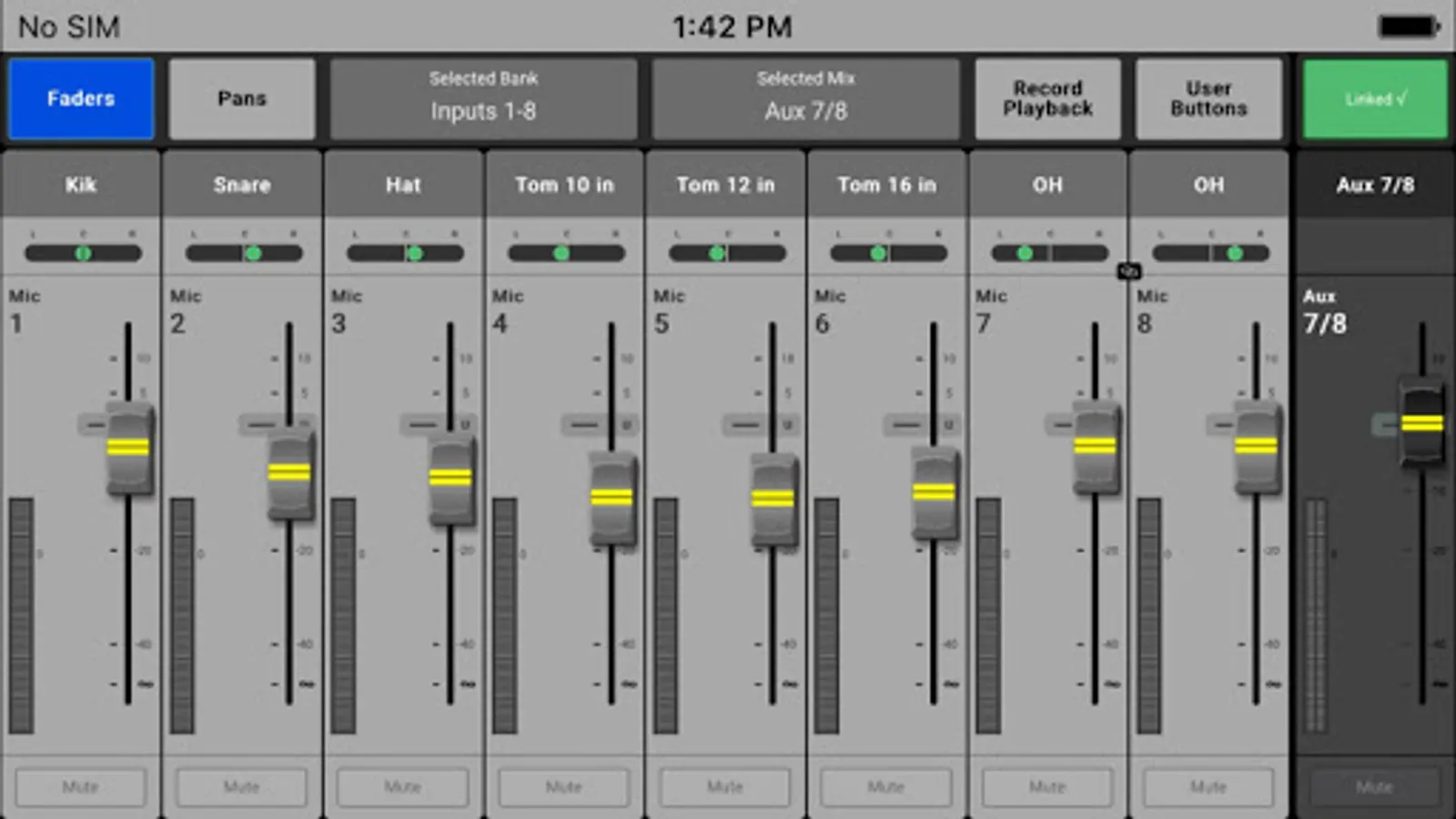 On smart phones, the TouchMix Control app functions as a personal stage monitor mix control with the option to also remotely operate the mixer’s record and playback features as well as programmable user buttons. The mixer operator may allow or restrict access to selected functions on a per-device basis.