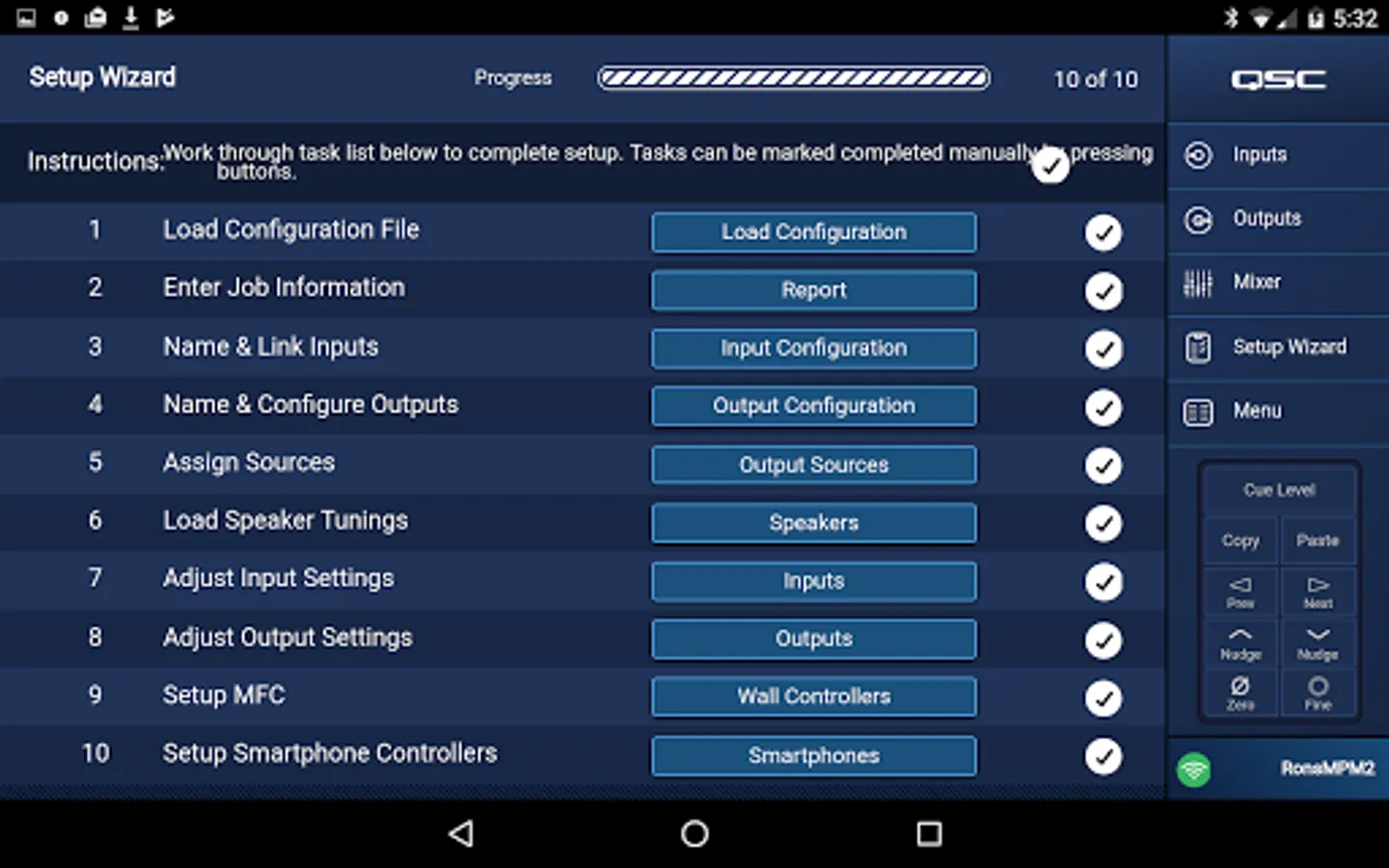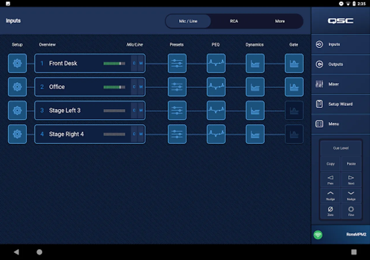 MP Install provides the system designer and installer an attractive graphic environment and intuitive workflow to configure and tune the system. A Setup Wizard helps the installer keep track of tasks and easily navigate the MP-M. Onboard Intrinsic Correction™ (factory FIR/IIR presets) for QSC loudspeakers help maximize the performance and value of the system.