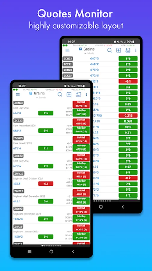 QST Mobile offers Real-time Streaming Quotes in such commodity products as: Gold, Silver, Crude Oil, Natural Gas, Corn, Soybeans, Wheat, Cattle, Hogs, Coffee,Cocoa, Currencies, Treasury Bonds and Notes just to name a handful of commodities as well as Stock quotes on NYSE, Nasdaq, and AMEX. You also get advanced order entry capabilities,news, world-class charting and analytics. intuitive and easy-to-use design it was developed with feedback from professional traders. QST Mobile - Quick Screen Trading delivers reliability, accuracy, usability and high performance.