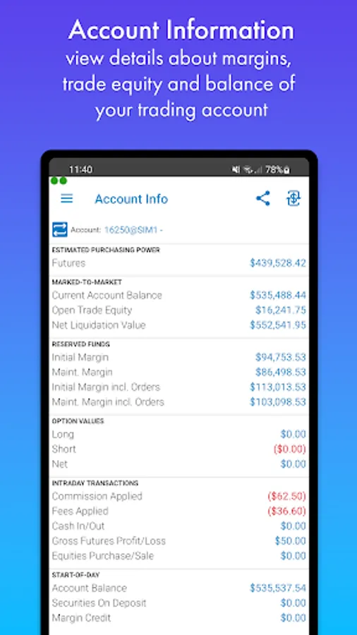 This application offers you the perfect balance between online trading with one tap and, at the same time, offers in-depth customizations for your trading actions. Visualizing your portfolio has never been easier. Quick account switching offers you a flawless transition between the accounts that comprise your portfolio. Applying filters and using simple gestures can show or hide details on any item in your portfolio. Real-time notifications provide instant feedback during your trading session.