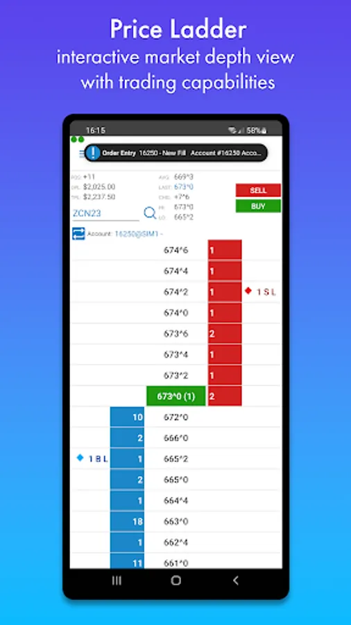 Price Ladder offers a real-time market depth view that highlights your relevant portfolio data in an interactive fashion.